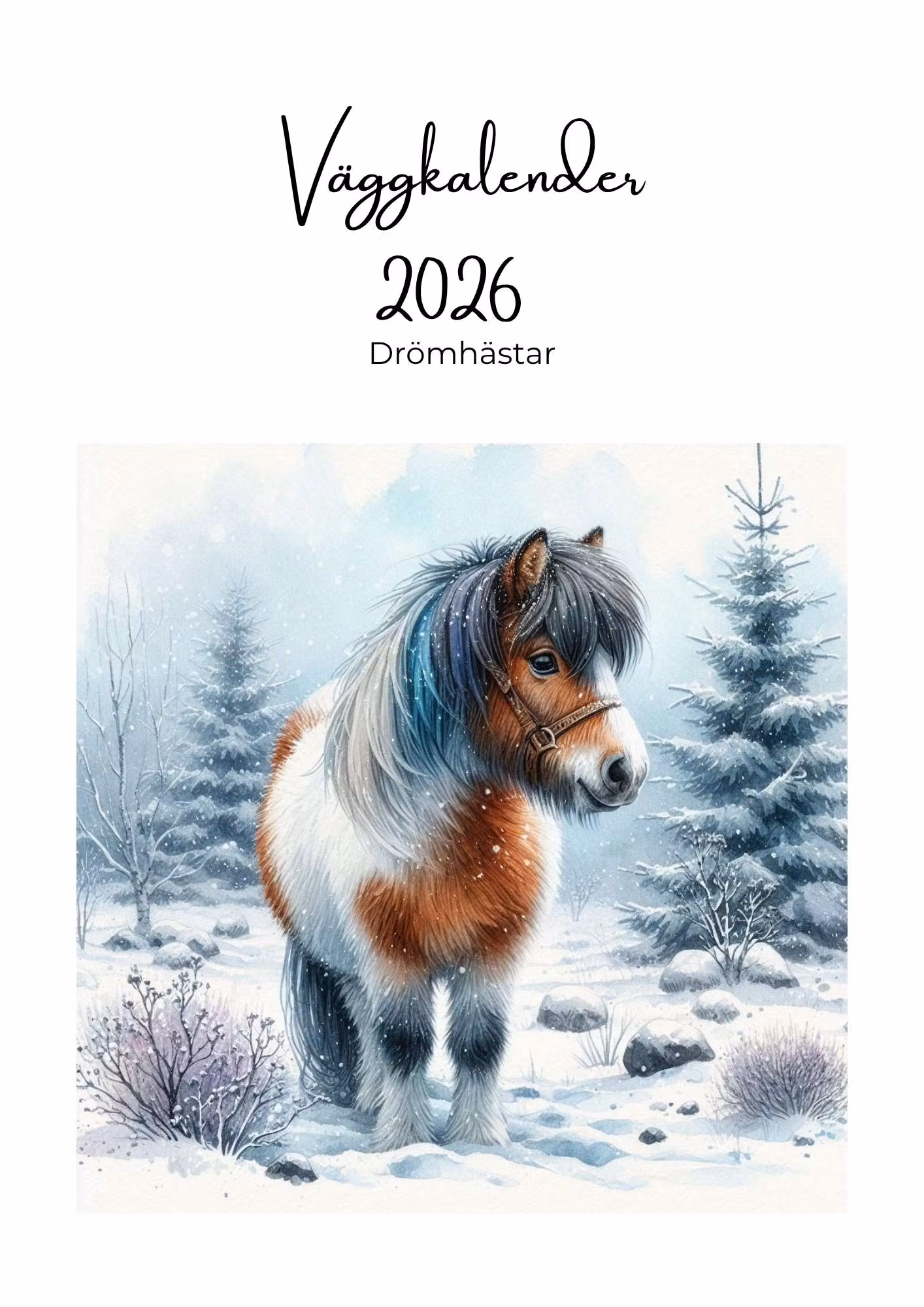 För alla som älskar hästar – låt Drömhästar 2026 bli din följeslagare genom året. Den här vackra väggkalendern innehåller 12 unika akvarell motiv av hästar och ponnyer, målade i mjuka färger som fångar deras elegans, styrka och lugn genom årets alla årstider.